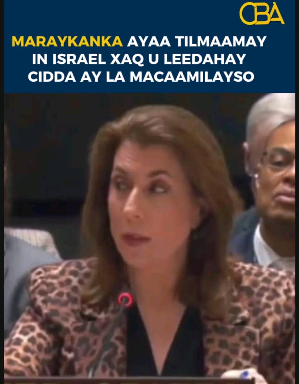 - Maraykanka wuxuu tilmaamay laba-wejiileyn (double standards) Golaha Ammaanka, safiiradda oo xustay in dalal dhowaan aqoonsaday Falastiin (oo ah dal aan jirin, siday sheegtay), halkaas oo Golaha Ammaanku aanu wax shir ah isugu yeedhin, sida maanta.
