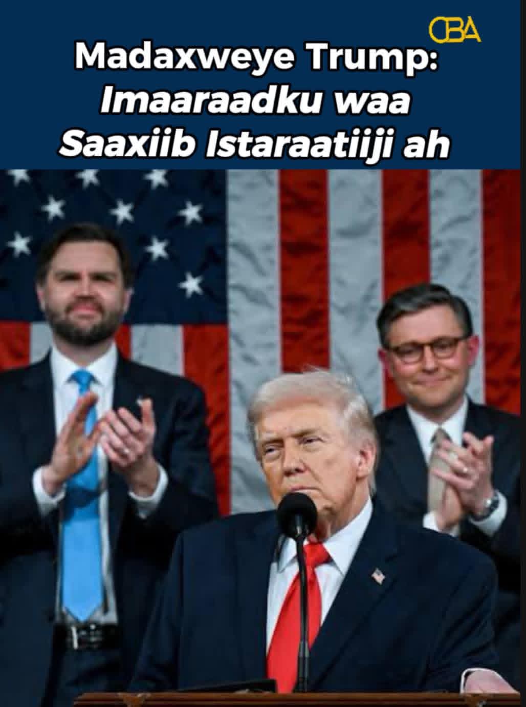 Khudbaddii Qaran ee 2026, Madaxweyne Donald Trump ayaa si gaar ah u muujiyay in Isutagga Imaaraadka Carabta (UAE) uu yahay saaxiib istiraatiiji iyo mid dhaqaale oo muhiim u ah Mareykanka.